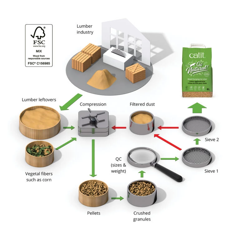 Introducing Catit Go Natural, our new high-performing and sustainable cat litter. Whether you’re just curious about sustainability or ready to completely overhaul your way of life, using eco-friendly products is a great place to start. By choosing this litter, you choose to recycle and lend a helping hand to nature. Key Features : Made of FSC-certified wood Superior ultra-high absorbency rate 99% dust-free & easy to scoop Unscented & chemical-free Made and packaged using today’s most sustainable technologies All of the wood in our litter is FSC-certified leftover lumber from sustainably managed forests. By recycling raw materials, we help save thousands of trees. Additionally, our litter production is very energy-efficient and completely solar-powered. Go Natural! Catit Go Natural is a new range of litters that, unlike many mineral cat litters, are based on sustainable sources.