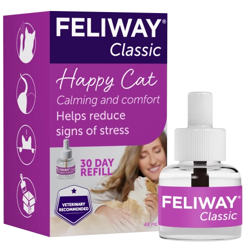 To be used with the Feliway Classic Plug-in Diffuser unit. Available in 48ml refills that last 30 days.