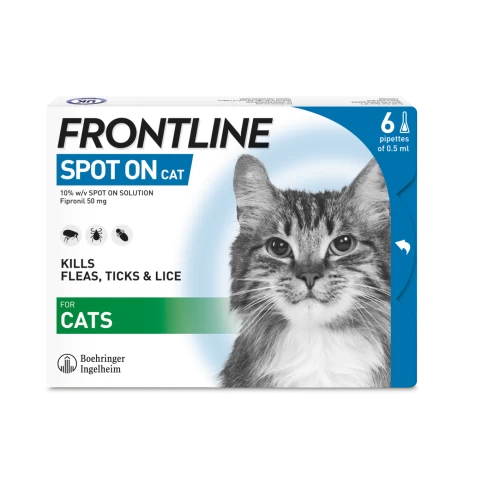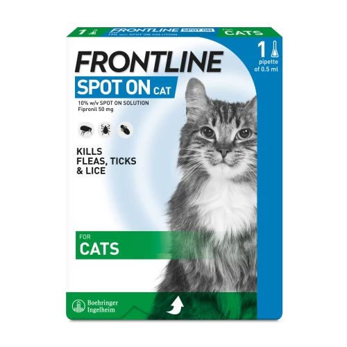 FRONTLINE Spot On is the original flea and tick spot-on formula from FRONTLINE, first used by vets, now available without a prescription. Once applied, the treatment will protect cats from fleas, ticks and lice – use monthly all year round.