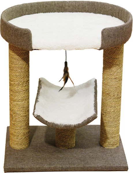 This Rosewood Catwalk Natural Saffron Cat Scratcher is perfect for playtime and for taking naps, with posts that are covered in seagrass with a square textile base. With a soft luxury plush top, your cat will love to snuggle up and relax.